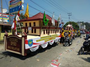 Sekretariat DPRD Kabupaten OKU Selatan berpartisipasi dengan menghias mobil berminiatur Gedung DPRD OKU Selatan dengan tema DIRGAHAYU RI KE 73 DENGAN SEMANGAT KERJA NYATA KITA BERSATU DEMI KEMAKMURAN MASYARAKAT SERTA KITA DUKUNG BERSAMA ATLIT INDONESIA AGAR DAPAT BERPRESTASI DI ASIAN GAMES 2018. DPRD OKU SELATAN MENYERAP ASPIRASI MEWUJUDKAN OKU SELATAN MANDIRI SEJAHTERA DAN RELIGIUS.