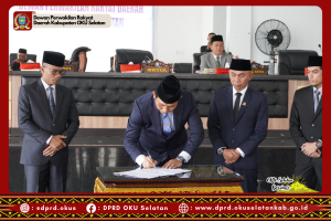 Kemudian selanjutnya Bupati OKU Selatan mengucapkan terima kasih dan mengapresiasi seluruh fraksi – fraksi DPRD atas kerja sama serta penandatangan berita acara persetujuan bersama yang ditandatangani oleh Bupati OKU Selatan Popo Ali Martopo, B.Comm dan Ketua DPRD OKU Selatan Heri Martadinata, S.E. yang didampingi langsung oleh Sekretaris Daerah OKU Selatan Rahmatullah, S.Stp