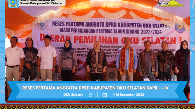 Masa reses merupakan masa paling penting yang secara fungsional sebagai menyaring aspirasi masyarakat, kegitan reses ini berlangsung dipimpin oleh ketua DPRD OKU Selatan heri marta dinata yang di hadiri oleh wakil ketua I DPRD OKU Selatan yohana yudhayanti, S.E., dan wakil ketua II DPRD OKU Selatan carles minarko, S.E., serta anggota DPRD OKU Selatan lainnya, kepala dinas kominfo zakiah, S.E., M.M, kepala dinas PMD OKU Selatan A.Romzi, S.E., M.M, kepala dinas PERKIM OKU Selatan Andry bastian, S.T., M.M, para camat, kepala desa, TNI dan Polri serta undangan lainnya.