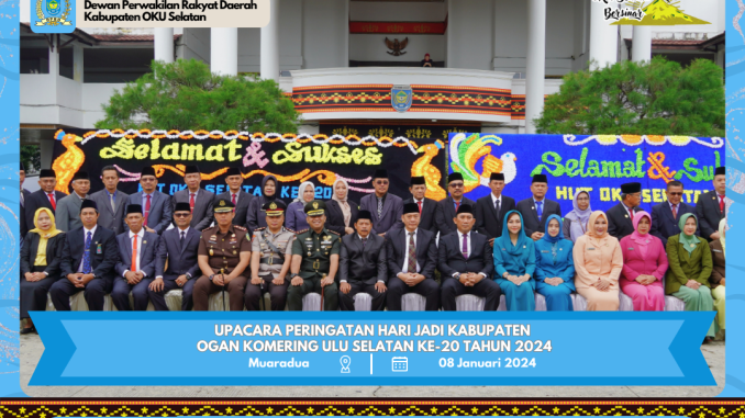 Telah berlangsung Upacara peringatan hari jadi Kabupaten OKU Selatan ke 20 tahun 2024 pada hari Senin (08/01/2024) di Lapangan Upacara Pemerintah Kabupaten OKU Selatan.