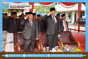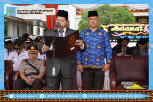 Pimpinan DPRD OKU Selatan yang diwakili oleh Sekretaris Komisi II Pansialdi, S.E bertugas sebagai pembaca teks Undang-Undang Dasar 1945.
