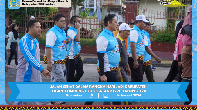Jalan Sehat dilaksanakan pada Minggu pagi (14/01/2024) dalam rangka HUT Kabupaten OKU Selatan ke-20 Tahun 2024. Rute Perjalanan dimulai dari Gedung Kesenian Muaradua dan berakhir di Stadion Mini, Bumi Agung OKU Selatan.