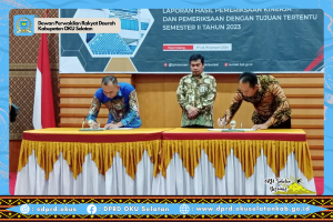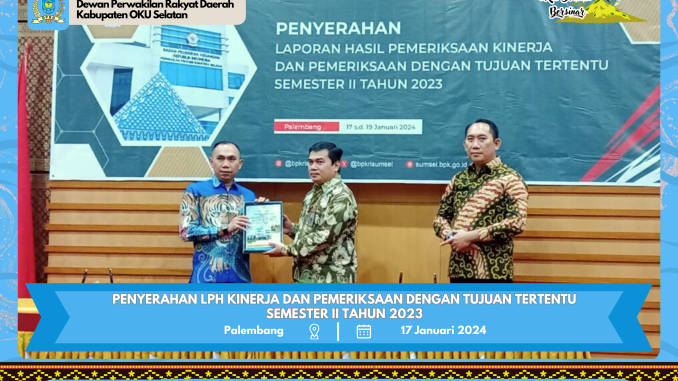 Ketua Dewan Perwakilan Rakyat Daerah (DPRD) Kabupaten Ogan Komeringn Ulu Selatan Heri Martadinata menghadiri Penyerahan Laporan Hasil Pemeriksaan (LHP) Kinerja Atas Upaya Pemerintah Daerah dan Pemeriksaan Dengan Tujuan Tertentu Semester II Tahun 2023, guna untuk meningkatkan kulaitan dan kuantitas jalan pemerintahan Kabupaten Ogan Komering Ulu Selatan.